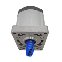 Bomba de engranajes marca REXROTH, para tractores New Holland (TM110, TM120, TM130, TM140). La función principal de las bombas a engranajes de eje cónico es convertir la energía mecánica (par y velocidad de rotación) en energía hidráulica (caudal y presión). Para reducir la pérdida de calor, las bombas a engranajes con eje cónico de Rexroth están diseñadas para ser extremadamente eficientes. Para alcanzar esta eficiencia, se emplea tecnología de fabricación de alta precisión y sellado de huecos dependiente de la presión.