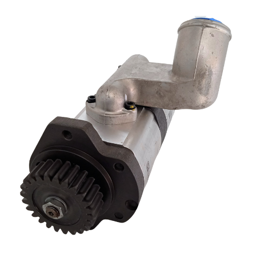 Bomba de engranajes marca REXROTH, para tractores JD (5045E, 5065E, 5075E). La función principal de las bombas a engranajes de eje dentado es convertir la energía mecánica (par y velocidad de rotación) en energía hidráulica (caudal y presión). Para reducir la pérdida de calor, las bombas a engranajes con eje dentado de Rexroth están diseñadas para ser extremadamente eficientes. Para alcanzar esta eficiencia, se emplea tecnología de fabricación de alta precisión y sellado de huecos dependiente de la presión.